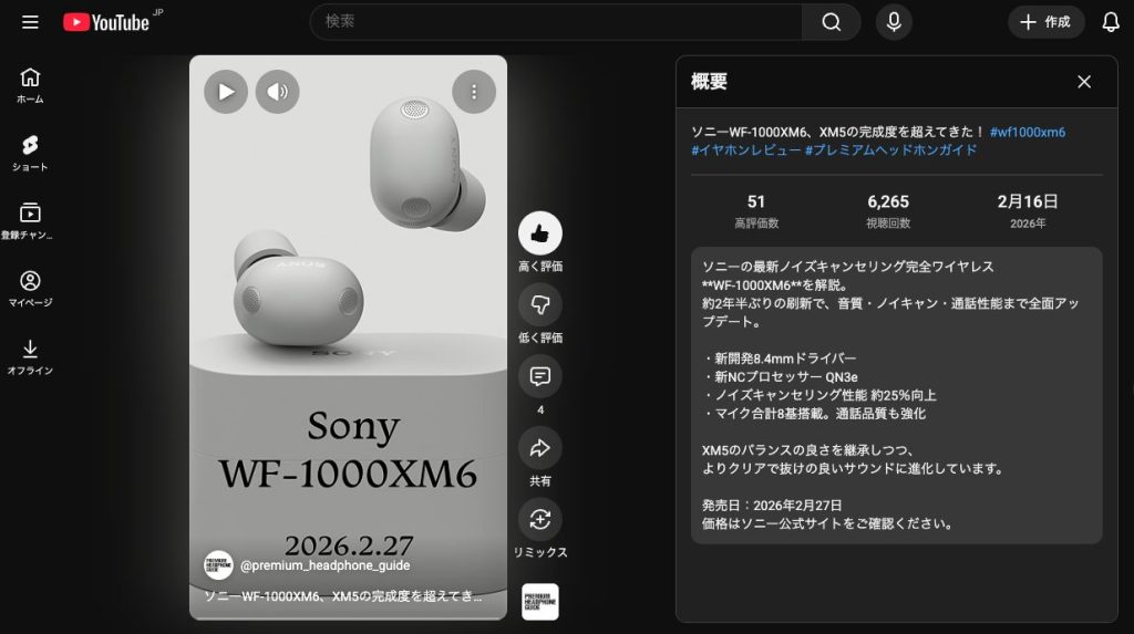 ソニーのノイズキャンセリング完全ワイヤレスイヤホン「WF-1000XM6」がついに発売されました! YouTubeショート動画に注目ポイントまとめましたので、ぜひご覧ください。今後も注目新製品や定番ロングセラーについて、動画で情報を出していきますのでお楽しみに!