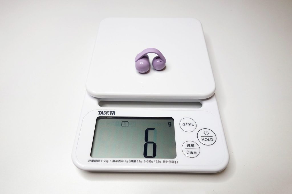 本体は従来のモデルよりブリッジが長めで、装着しやすさもUP。その絶妙な長さのおかげで装着までが非常にスムーズ。指先での扱いとなるケースからの取り外しは電車でヒヤッとする場面もありますが非常に安定感があります。ここは非常に考えられているなと感動する部分。本体の重量はわずか6gで付け心地も軽く正面からのでっぱりもあまり感じません。