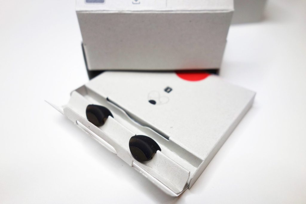 指先でつまめるころんとしたケースの外観は非常にコンパクトで、艶のある仕上げがとても美しいです。光沢のあるものは指紋がつきやすいという懸念点も従来の製品ではありましたが、指紋が目立ちにくいかつ少し汚れがついたときもサッと拭き取るだけで元通りになるというメリットが。傷が気になる方には別売りの専用ケースカバーも販売されており、前途のフィッティングクッションも付属しているため手持ちのイヤホンと別の色味を組み合わせることでバイカラーなより自分だけのオシャレアイテムとして楽しむこともできます。
