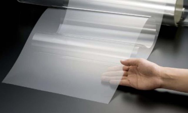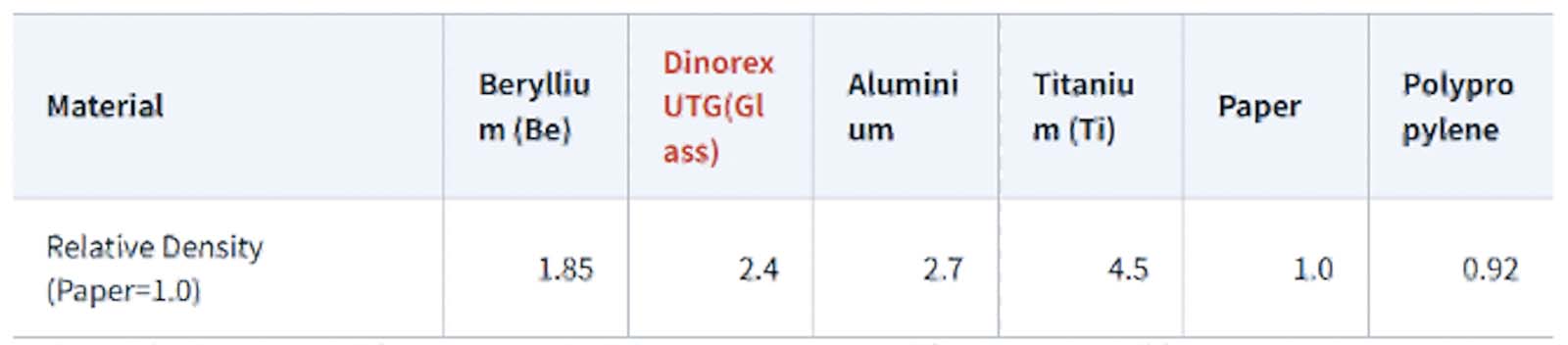 UTG振動板の基となる超薄板ガラス「Dinorex UTG」は、厚さ25〜200μm(マイクロメートル、1mm=1000μm)ほどです。著名な強化ガラスは最薄でも100μm程度、実際にスマートフォンで採用されているカバーガラスの厚みは500〜1000μmが一般的というから、まさに〝超薄い〟ガラスです。高剛性でありながらヤング率(弾性率)はPETなどプラスチック素材より格段に高く、そのうえ優れた過渡特性を示すというまさに画期的な素材です。